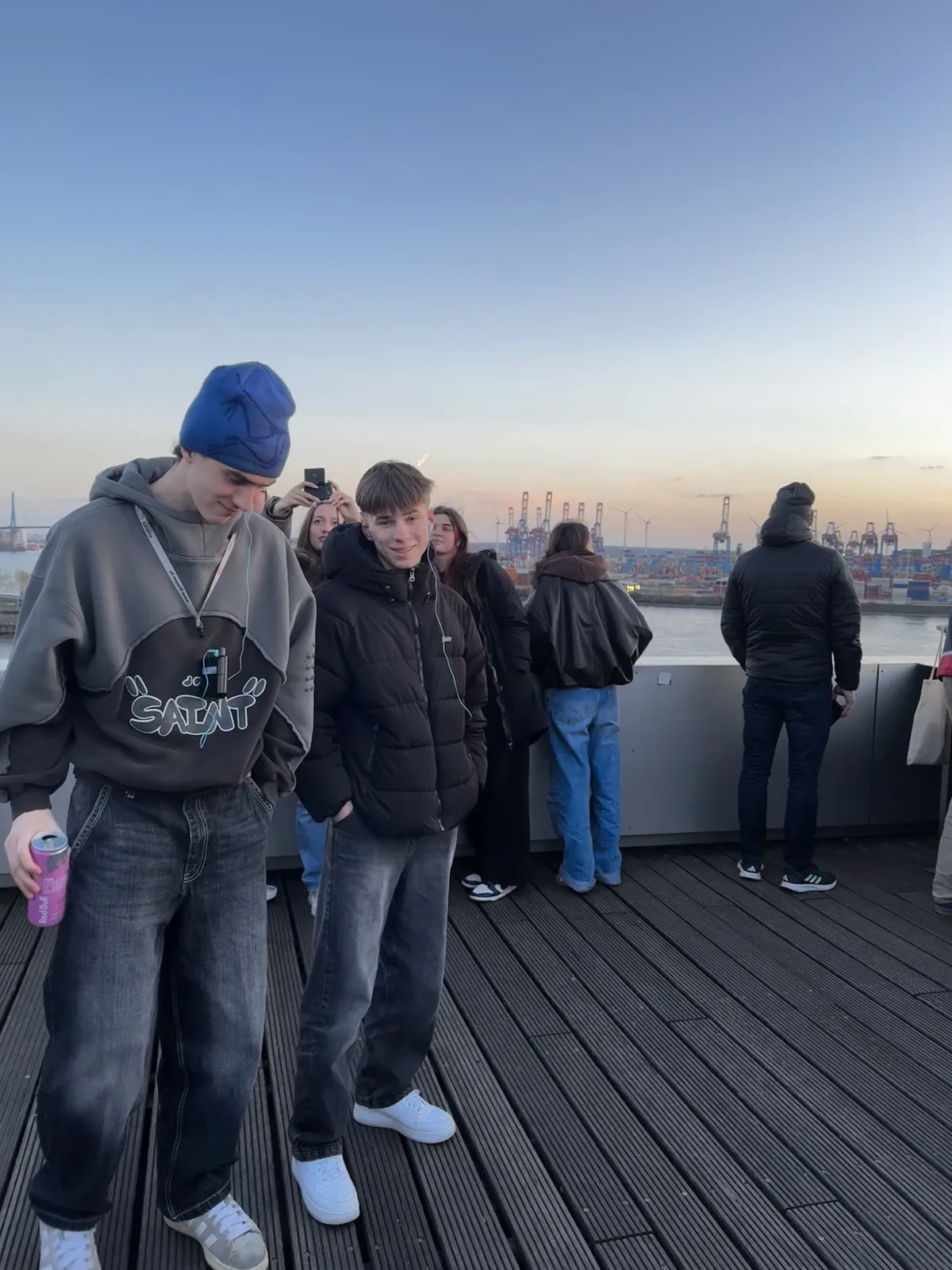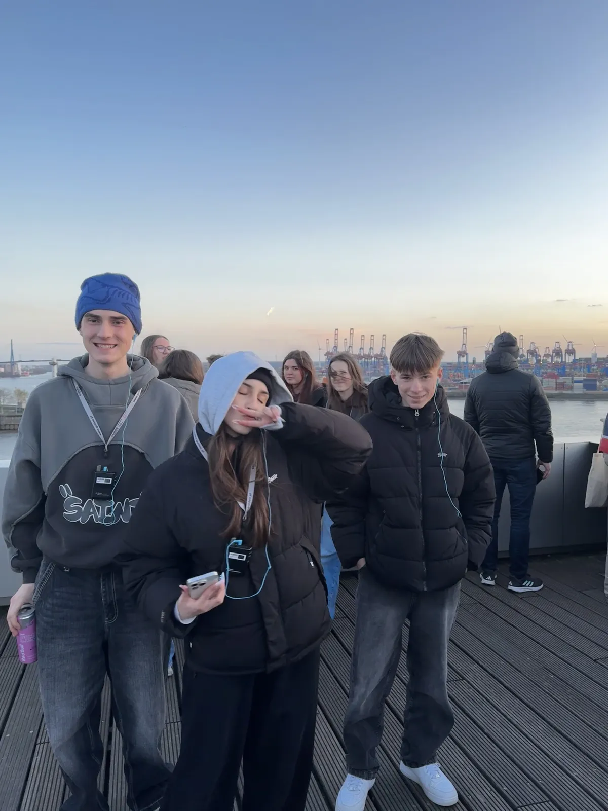 Piątego dnia rano przypłynęliśmy do Hirtshals, gdzie mieliśmy krótki postój przy latarni morskiej. Po zrobieniu pamiątkowych zdjęć wyruszyliśmy do Niemiec. W Hamburgu byliśmy późnym popołudniem i od razu przystąpiliśmy do zwiedzania. Zobaczyliśmy m.in. kościół św. Michała, Stare Miasto,  stary tunel pod Łabą, do którego zjechaliśmy windą i ratusz. Mieliśmy okazje wejść pieszo po typowo surowych stalowych schodach na platformę widokową z której podziwialiśmy port (największy w Europie) i rzekę Łabę.