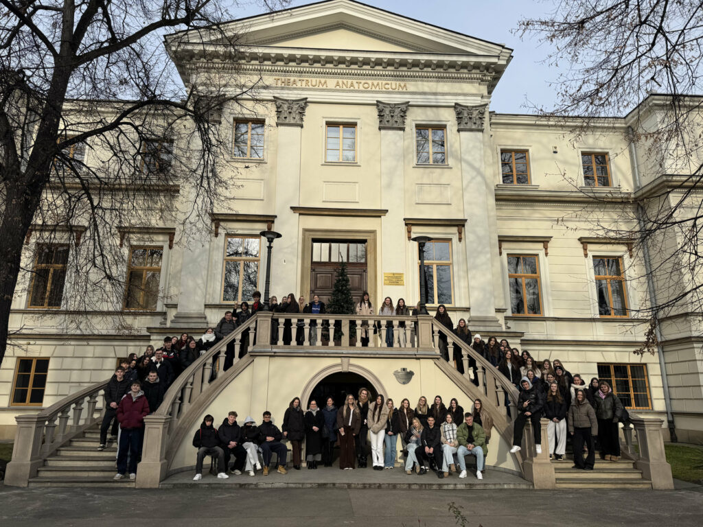 Dnia 17.12.2025 r. uczniowie klas trzecich o profilach biologiczno-chemicznym oraz medycznym pod opieką nauczycieli: Bożeny Niemczyk, Bogusławy Zygmunt, Dominiki Polańskiej, Anny Mieleszko i Edyty Ulman uczestniczyli w wyjeździe edukacyjnym do Muzeum Anatomii Człowieka w Krakowie. Zwiedzanie zostało poprzedzone krótkim wykładem wprowadzającym, podczas którego prowadzący omówił historię muzeum, zasady ekspozycji preparatów anatomicznych oraz znaczenie anatomii w rozwoju medycyny.